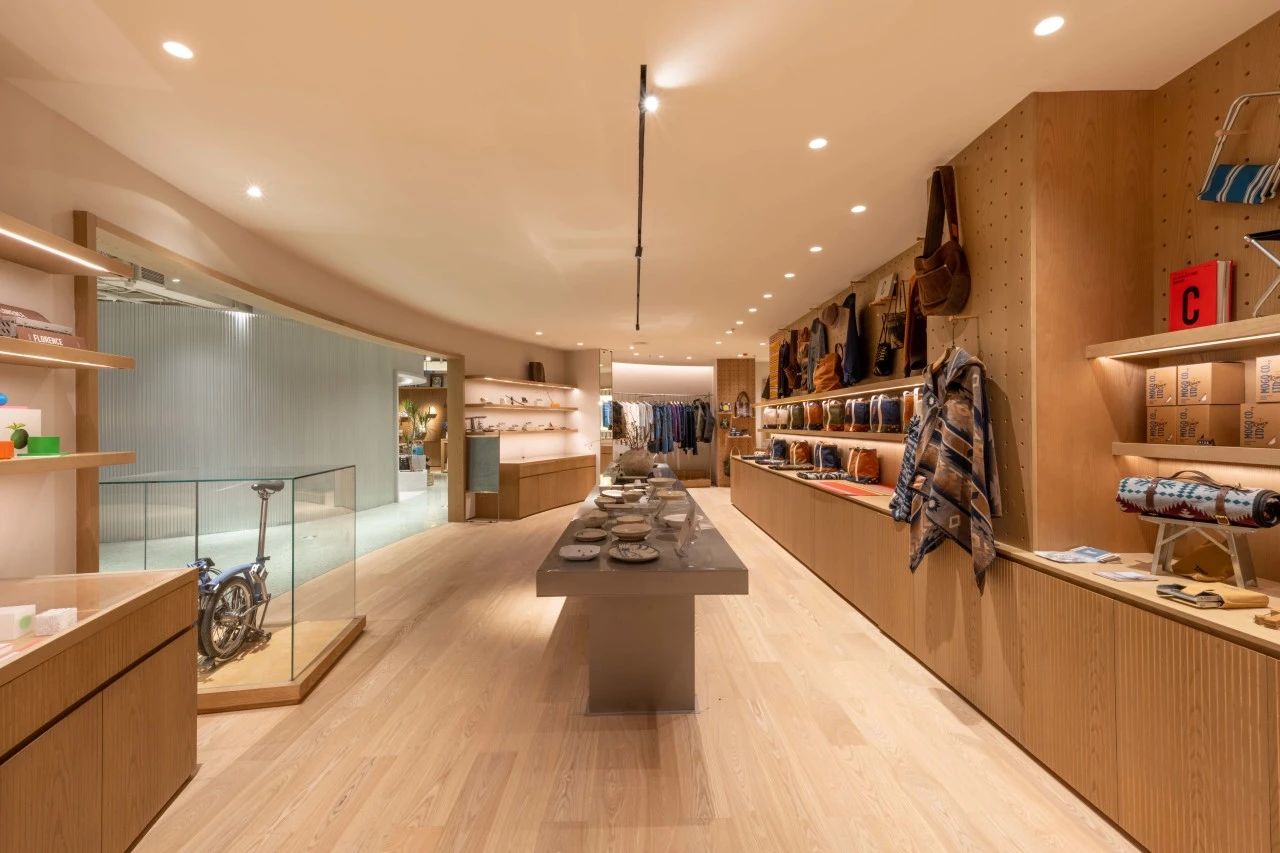 沿著曲折的動線繼續向內漫游,活動、咖啡、服飾、展覽、家居等功能區次第出現在眼前,而空間中自然生長的大量綠植讓人宛如置身室外,徜徉于一片綠洲之上。這些富于靈感的巧思,都來自設計師青山周平(下簡稱“青山”)別出心裁的設計理念。