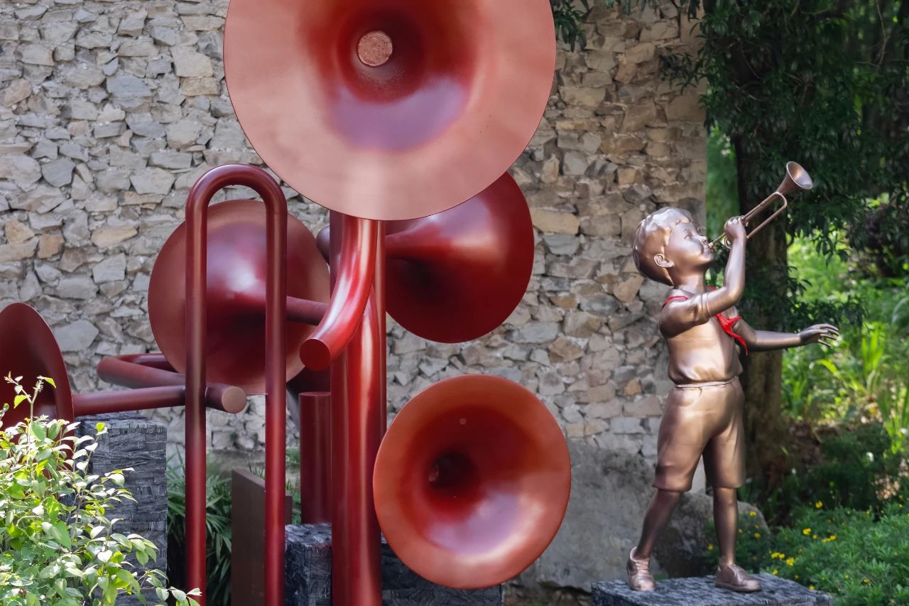 小龍吹奏號(hào)角,演奏和平的五線譜