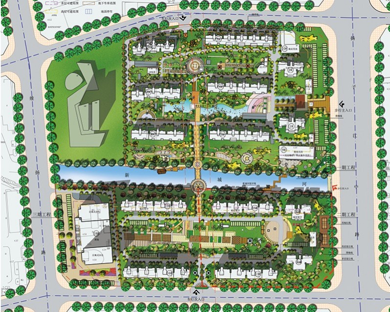 本案位于揚州市經(jīng)濟技術(shù)開發(fā)區(qū)內(nèi),屬規(guī)劃中的揚州市第二城中心地區(qū),其四至范圍為:維揚南路以東、揚子江中路以西、世紀家園居住小區(qū)以南。用地由南北兩個矩形地塊組合而成,整個用地被新城河分割成南北2塊,總建筑面積22.68萬平方米。設(shè)計富于創(chuàng)新,充分運用現(xiàn)代風格的新型住宅小區(qū)理念,體現(xiàn)個體與整體協(xié)調(diào),具備優(yōu)良社區(qū)生活品質(zhì),全力打造以山水園林景觀為特色的生態(tài)住區(qū),創(chuàng)造現(xiàn)代與傳統(tǒng)相輝映的品質(zhì)生活空間,同時具有良好的社會效益、經(jīng)濟效益、環(huán)境效益,成為揚州未來生活環(huán)境的典范。